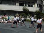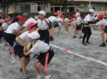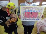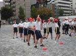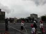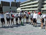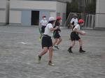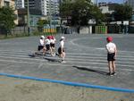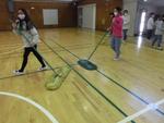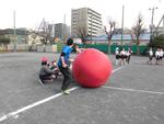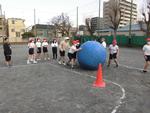 56校時は4年生が雨上がりの校庭でお別れ学年集会です。大玉転がしをしたりリレーをしたりして楽しみました。優勝カップは何組の手に?