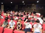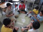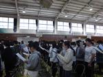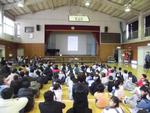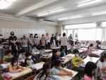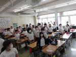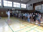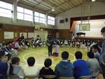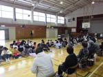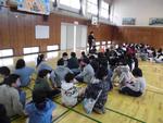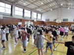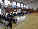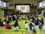 1日目のテストが終わって学年集会で盛り上がる6年生