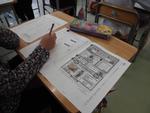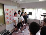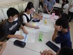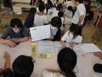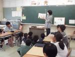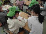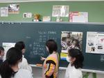 木陰が涼しい陽気です。「ロケット公園で遊びたかった」と残念そうな子もいましたが、まち探検は社会科の授業で学区の様子を知ることが目的です。帰校後は探検カードに、見つけたもの、出会った人、気づいたことなどを書き込んでいきます。体験→振り返り→共有の順で学習を進めて個人の気づきを学級で話し合います。