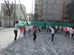 一気に春到来!のぽかぽか陽気です。ちょっと動いただけで汗をかいてしまいます。そんな中、体育委員会企画の長縄大会に向けての練習を中休みに行いました。今日は低・中学年が校庭、体育館での練習日です。クラスごと、かけ声を合わせて連続跳びの練習をしました。低学年も8の字跳びにトライ!元気なお日様に負けじと元気いっぱい体を動かしました。