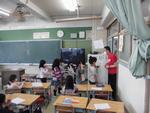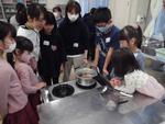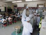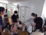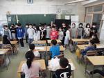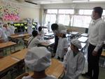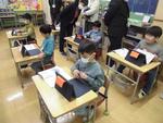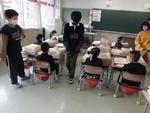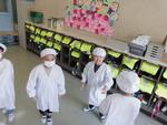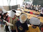 1年生の教室では明日から始まる給食に備えて白衣に着替える練習をしていました。子どもたちはとても嬉しそうに着替えていました。給食が楽しみです。