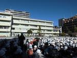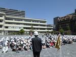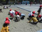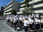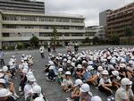 10時からは今年度初めての避難訓練です。1年生も「お・か・し・も」の約束を守って上手に避難できました。地震や火事はいつ起こるかわかりません。いつでも自分の命を守る行動ができるように訓練していきます。