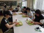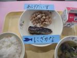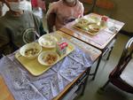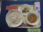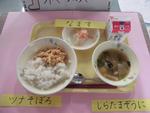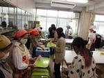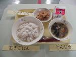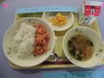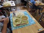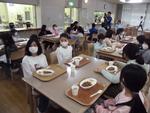 お待ちかねの給食が始まりました。今日の献立は麦ご飯、牛乳、つなそぼろ、豚汁です。1年生は練習の成果を発揮して上手に支度できました。地域協働本部のボランティアさんも入り一緒に配膳してくれます。ありがとうございます。子どもたちは嬉しそうに「いただきます」と挨拶して食べていました。明日からも残さず食べてくださいね。藤給食センターの皆様1年間よろしくお願いします。