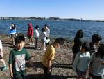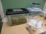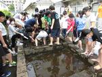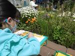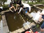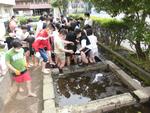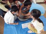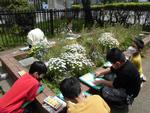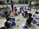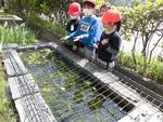 2年生は校庭で春見つけです。花壇に咲いた草をスケッチしたり柑橘類に集まってくるアゲハチョウを観察したりします。池のメダカも人気者です。いろいろな発見をしてください。