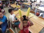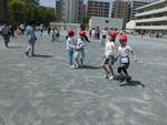 今朝は6年生と3年生でバナナ鬼集会を行いました。鬼にタッチされたら両手をあげてバナナポーズをとります。仲間にタッチされたらバナナから人に戻れるというルールです。ビブスを着た鬼に追いかけられてキャーキャー言いながら朝から全力で逃げる子どもたちです。