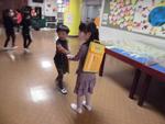 そして、校内探検。手をつないで静かに廊下を歩きました。年長さんもとても上手に歩いています。園では一番年上のお兄さん、お姉さんたちですものね。4月からは立派な小学生の仲間入り!2年生になったぼくたち、わたしたちと仲良くしましょうね。