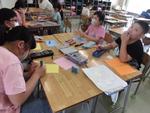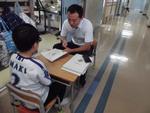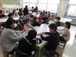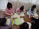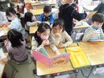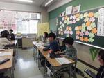2年生の教室では明日の遠足の準備です。電車に乗るので並び方の練習をしているようです。楽しんできてください。4年生は姿勢を正して書写の時間です。なかなか上手に書けています。隣のクラスでは3年生に渡す遠足のお守りを作っています。今年もペア学年交流や異学年交流を大切にしていきます。