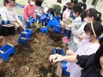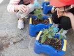 帰校後は苗を植木鉢に植え替えます。連休前に土を入れて準備していたのですぐに植え替えができました。すくすく育って大きな実がなるとよいですね。