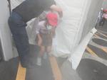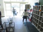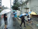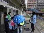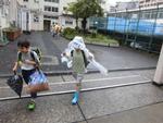 連休明けは大雨警報が発令され登校時は荒れた天気となりました。「くつしたぬれちゃった」と足をびしょびしょにしながら登校します。昇降口では傘をたたんで、レインコートや長靴を脱ぎ上履きを袋から出してと苦戦して教室に上がります。職員も総出でお手伝いと交通整理に当たります。