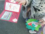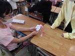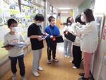 明日遠足に出かける3年生の教室に、ペア学年の4年生が手作りのお守りを渡しにいきました。「気をつけて行ってきてください」「ありがとうございます」とあいさつを交わしてペアの子に手渡します。お守りをもらった3年生は大事そうに眺めていました。明日は気温が上がりそうです。熱中症に気をつけて行ってきてください。