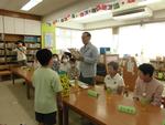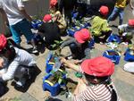 2年生が夏野菜の苗を買いに商店街の花屋さんに出かけました。お金を握りしめて「ミニトマトください」「私はピーマンです」「ぼくはきゅうり」「なすです」「おくらください」とお買い物です。お店の方が一人一人丁寧に対応してくださいました。ありがとうございました。