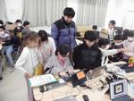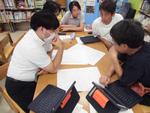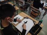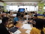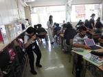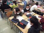 外国から転入した子どもたちが日本語を学ぶ国際教室ではGIGA端末を持って学校探検をしています。「ここは校長室です」「ここは給食室です」と場所と名前を確認しながら写真を撮っていきます。