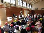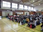 児童集会で「6年生と仲良くじゃんけんぽん集会」を行いました。6年生がひたすら在校生とじゃんけんをするという単純なルールなのですが、「勝った、負けた」と大盛り上がりです。6年生と過ごせるのもあとわずかです。たくさんふれあって思い出にしてください。