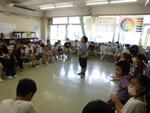 今週はクラブ発表週間です。4年生以上が参加するクラブでどんな活動をしているかがわかるVTRを児童朝会で放送しました。中休みには体育館ステージで、音楽クラブの演奏発表とダンスバトンクラブの演技発表がありました。自由参加でしたが、大勢の子どもたちが詰めかけて、大盛況でした。たまたま来校していたしろばら保育園の年長さん達も発表を見学し「楽しかったよ」と言って帰って行きました。