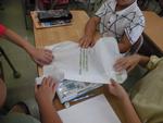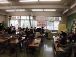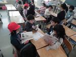 6年生の教室では配られた社会科資料集に釘付けです。歴史好きが多いようで、古墳時代の想像図や戦国時代の合戦の図を見てわいわい。学習が進むのが楽しみです。