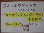 今日の朝会は「学校のきまり」についての話でした。6年生が去年から「学校をよくするプロジェクト」で取り組んでいることを紹介してくれました。廊下を走らないようにするPJでは段ボールロボットを作ったり、看板を設置したりして呼びかけています。その他にも「遊んではいけない場所では遊ばない」「時間を守る」などの約束について話がありました。学校の約束は年度初めにお渡しした「南吉田スタンダード」に細かく書いてあるのでご確認ください。