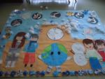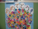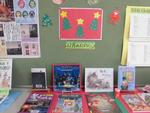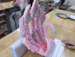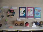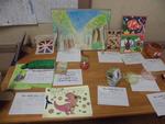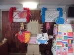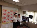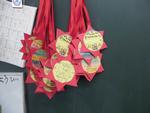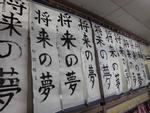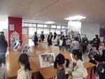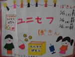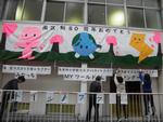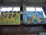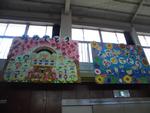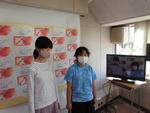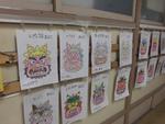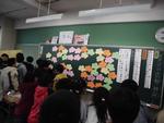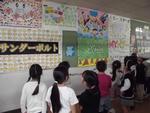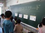 表彰に続いてはクラブ発表ビデオの放送です。先日ステージ発表した音楽クラブとダンスバトンクラブ、そして陸上クラブの活動の様子が放映され、食い入るように見ていました。職員室前には手芸クラブの児童の作品写真も掲示されています。