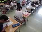 6年生が全国学力・学習状況調査を受けました。1時間目は国語、2時間目は算数、3時間目は学習意欲や方法、生活全般にわたる意識調査を行います。子どもたちは真剣に問題に取り組んでいました。