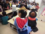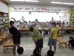 発表用の着ぐるみやかぶりもので変身したお兄さんやお姉さんを横目で見た園児さんたちは、お家へ帰ってからなんと報告するのでしょうか。南吉田小の人々はいつも着ぐるみやかぶりものを着けている訳ではありません。念のため (^^;)
