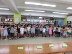 今朝はたくさんの子どもたちに賞状を渡す表彰朝会がありました。読書感想文、読書感想画、市書写展、巡回図工展、MY漢字検定、MY算数検定といろいろな分野でがんばった子どもたちです。この中には、市読書感想画中央コンクールで「教育委員会賞」を受賞した児童も含まれています。教育委員会賞を受賞した児童は市の表彰式に参加し、賞状を渡される予定です。