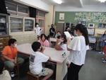 1年生と2年生がペアで学校探検をしました。1年生が行きたいところと2年生が案内したいところをすりあわせて学校中を探検します。校長室にやってきたペアは「古い校長先生の写真が貼ってあるね」「6年生(卒業式)の写真だ」と興味津々です。理科室で人体模型を発見したり、事務室に入ったりと普段は行かないところを探検して大満足の子どもたち。事後の振り返りでは「仲良くできたよ」「1年生がちょっとわがままだったけど大丈夫だった」「また行きたい」などの感想が出されていました。