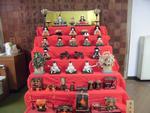 今日の給食はひな祭りにちなんだ献立「菜の花ご飯」です。玄関脇のひな人形も桃の節句を祝っています。