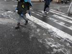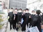 強風の中下校する6年生。みんなで帰るのも最後ですね。