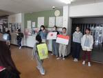 今日は卒業式で歌う「はなはさく」「旅立ちの日に」の練習です。段々と気持ちが乗って、上手になってきました。当日までにもう一段ステップアップしてくださいね。玄関ホールには6年生から贈られたMYワールドくん立体壁画が飾られました。そして卒業記念のお菓子ハーバー(育友会提供)が全校に配られお祝いモードが加速します。