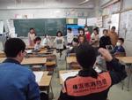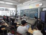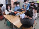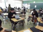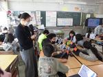 3年生が社会科の「まちの安全を守るはたらき」で学んだ内容を生かして、防災MY検定づくりに取り組んでいます。消防署見学で学んだ火事や救急、防災のことをまとめてクイズにしたり、警察の仕事で学んだ交通安全についてのクイズを考えたりしてロイロノートで出題します。教室ではGIGA端末でお互いの問題を解いてアドバイスをしていました。この日は読売新聞の記者さんが取材に入り、子どもたちの取組を熱心にメモしていました。ぼうさい寺子屋の活動が「ぼうさい甲子園」で表彰されたことで取材にいらしたそうです。どんな記事になるのか楽しみです。