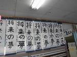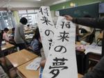 3、4校時は6年生が体育館で書初めに挑戦です。「将来の夢」という文字を力強く書きました。