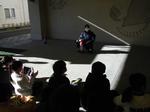3年生は今年の目標を書いています。1年生はお正月遊びで羽子板をしていました。