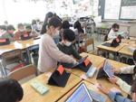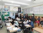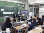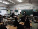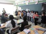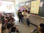 4年生のクラスでは中国からの転入生を紹介しています。その後は早速日本語のお勉強です。