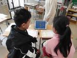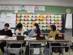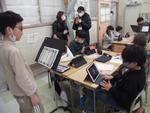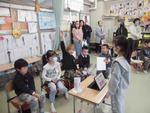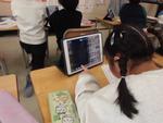 国際教室でもアイパッドは大活躍。「やさい」「さかな」「くだもの」「にく」「どうぶつ」などものの名前をたくさん集めて勉強中です。4月から先生になる予定の鎌倉女子大の学生さんたちが授業見学にやってきて熱心にメモを取っていました。
