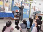 中休みには図書委員の5年生が司書と一緒にやすらぎ保育園に出かけて絵本の読み聞かせをしました。幼保小連携事業の一環ですっかりおなじみになった読み聞かせですが、年長児さんは楽しんでくれたでしょうか。