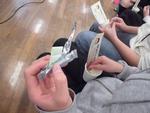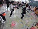 外国につながる児童が多く在籍する南吉田小学校では遊びの集会もインターナショナルです。今日は国際理解教室のフィリピンの先生に紹介していただいたフィリピンの遊び「Sipa」を体験しました。「Sipa」はタガログ語で蹴るという意味で、羽の付いた平べったいおもりをリフティングして競う遊びです。