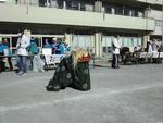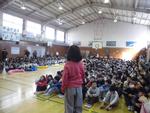 抜けるような青空の下での開会式 12月のボイスオブユースの入賞者の表彰式もあわせて行いました。アトラクションとしてお囃子と獅子舞が登場。子どもたちは珍しそうに見入っていました。