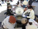 豚汁は大鍋でぐつぐつ。行列のできるブースがあちこちに。大人も子どもも、日本人も外国人も地域に住む多くの方が楽しく参加していました。関係者のみなさま、早朝より準備していただきありがとうございました。