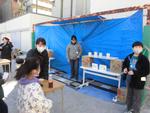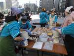もちつき会場でついたおもちは、手際よくあんこやきなこをからめてパッケージされます。本校職員は焼きそばコーナーで売り上げに貢献!