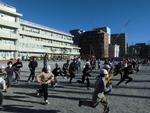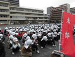 地震→給食室火災を想定した避難訓練がありました。寒い中ですが真剣に参加しました。