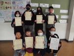 市書写展、市総合文化祭作品展、区図工巡回展、読書感想文コンクール、読書感想画コンクールに、学校代表として作品を出展した皆さんにも賞状を渡しました。