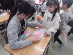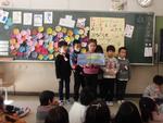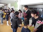 ペア学年で6年生にお世話になった1年生が、コサージュ&名札を手作りしてプレゼントしました。「あそんでくれてありがとう。」「今までおせわになりました。」とかわいくあいさつして、コサージュをプレゼントします。もらった6年生は嬉しそうに胸につけていました。1年間ありがとうございました。