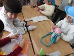 1年生の最初にするプリントに線をかいたり、折り紙を折ったり、数字を書いたりしてお勉強気分です。ゲームもしました。