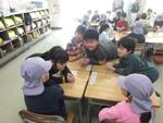 絵本の読み聞かせを全体でしたり、1対1でしたりします。1年生はこの日のために頑張って練習しました。とても上手です!