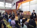その後は離任式です。3月で南吉田小学校を退任する教職員にお手紙や花束をわたし別れを惜しみます。挨拶のあとは子どもたちとのお別れです。「お世話になりました。」「ありがとうございました。」「元気でね~。」と声がかかります。ハイタッチで挨拶する子も。