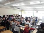 教室や校庭では3月で転校する児童のお別れ会や1年間ありがとう集会などが行われています。このメンバーで過ごすのも明日までですね。