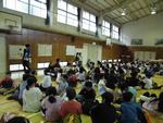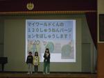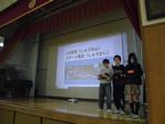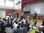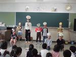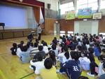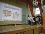 2年生が「ふきのとう」の音読発表会を行いました。お客さんは1年生です。「ふきのとう」には、ナレーターさんのほかに「竹やぶ」「雪」「お日さま」「はるかぜ」「ふきのとう」の役の人がいます。動作もついて、声もはきはきしていました。たくさん練習したのでしょう。一生懸命な様子が伝わってきました。1年生も一生懸命聞いていましたね。温かい気持ちになりました。
