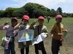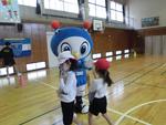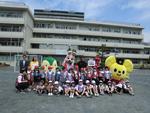 Jリーグのサッカークラブ横浜FCスマイルキャラバンに1年生が参加しました。4月の2年生に続いて今日もコーチとフリ丸が来てくれました。コーチの指示でたくさん体を動かしてボールや友だちと触れ合って楽しいひと時を過ごしました。何といってもフリ丸の人気は絶大です。校長室で記念撮影!