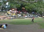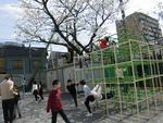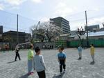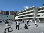 中休みは青空の下で元気に走り回ります。鬼ごっこ、ドッジボール、バスケットボール、鉄棒にジャングルジム、日向ぼっこをしてまったりする子もおり、思い思いの時間を過ごしています。大いに遊びましょう。