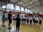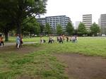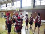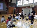 個別支援級児童が今年もYSCC(横浜スポーツ&カルチャークラブ)の選手、スタッフと一緒にウォーキングフットボールを楽しみました。地域のバスケットボールクラブやサッカークラブとの連携事業の一環です。コーチがルール説明をしてくれて、選手と一緒に試合開始。ウォーキングフットボールは走ってはいけないルールなのでボールだけが先に転がってあらあら・・・。通常のサッカーは怖くてできないという子も、これなら楽しく参加できます。
