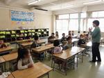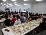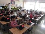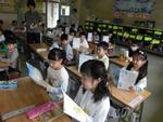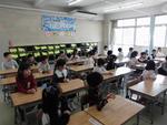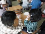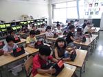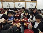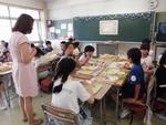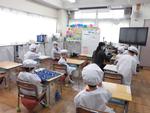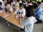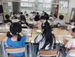 6年生による歓迎セレモニーの後は3年生、4年生の教室で子どもたちをもてなします。教室ではゲームやプレゼント交換で交流する計画になっており、中国語と日本語が両方分かる児童が活躍します。そして給食体験ではきんぴら、みそ汁、メヒカリフライ、ご飯、牛乳という定番和食メニューを味わっておりました。ずいぶん楽しそうにおしゃべりしている子どもたちもいました。